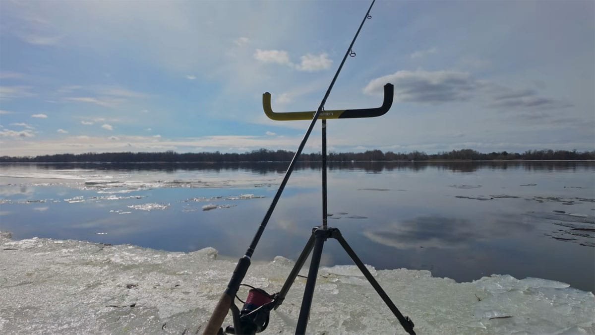 - Позиціонування: вудилище встановлюється на максимально високу триногу. Кут нахилу до води має бути близьким до вертикального. Це мінімізує площу контакту шнура зі сміттям і кригою.