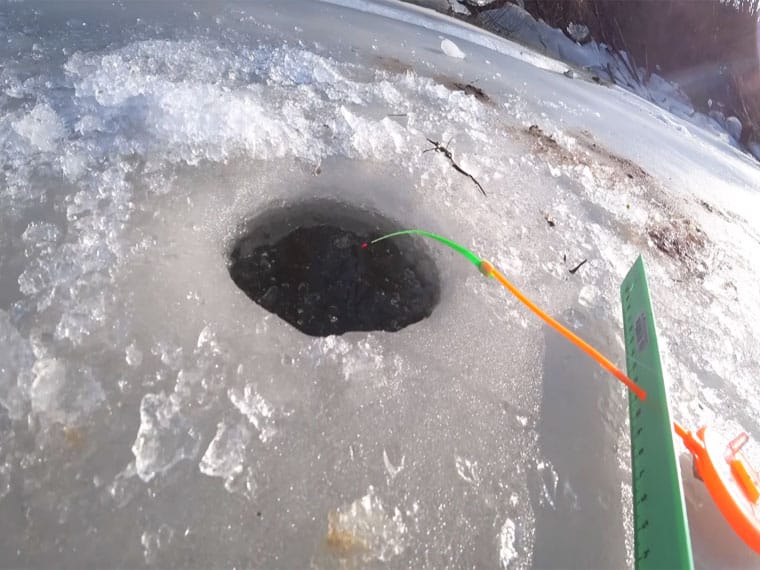 Простий прийом – злегка присипати лунку снігом або почати лов через кілька хвилин після буріння. Це робить обстановку під льодом спокійнішою.