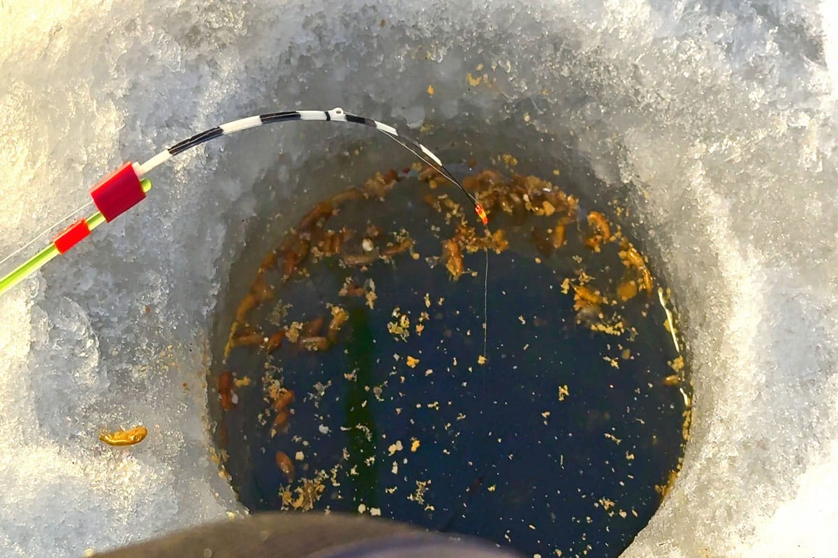 - Мормышки с насадкой — обычно это мотыля, который используется в качестве приманки.