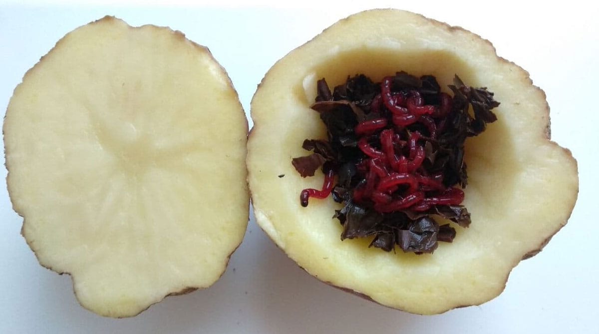 Для подготовки такой «живой капсулы» потребуется минимум усилий. Нужен один средний, твердый клубень картофеля. Его следует вымыть и разрезать пополам. Затем обычной ложкой или ножом в одной из половинок делается углубление. Его размер зависит от количества мотыля. Важно не прорезать картофель насквозь.