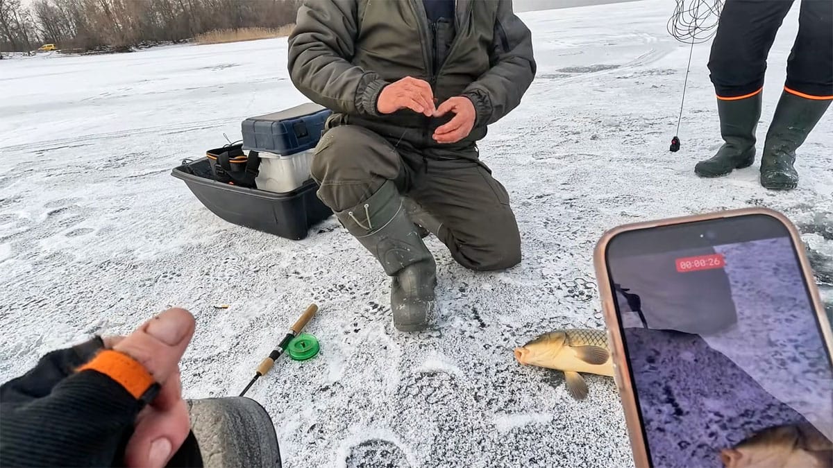 Зимняя рыбалка на открытых просторах Днепра в районе Черкасс требует ювелирной точности. Температура воздуха -15 градусов. Лед толщиной более 20 сантиметров. Глубины в месте ловли варьируются от 5 до 7 метров. Главная цель — дикий сазан и крупный речной карась. Результаты местных рыболовов доказывают: точка рабочая. 3 сазана за 20 минут — это реальный показатель при правильном выборе локации.