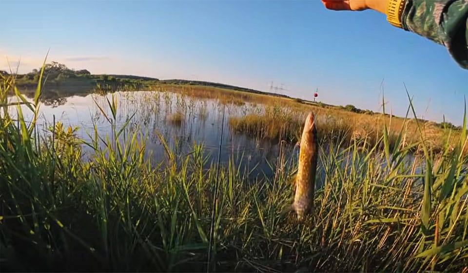 Кстати, самая злая поклевка часто случается не на проводке, а в момент, когда приманка только упала в воду. Щука стоит прямо под окном в траве и атакует все, что нарушает ее спокойствие. Так что будь готов сразу после заброса.