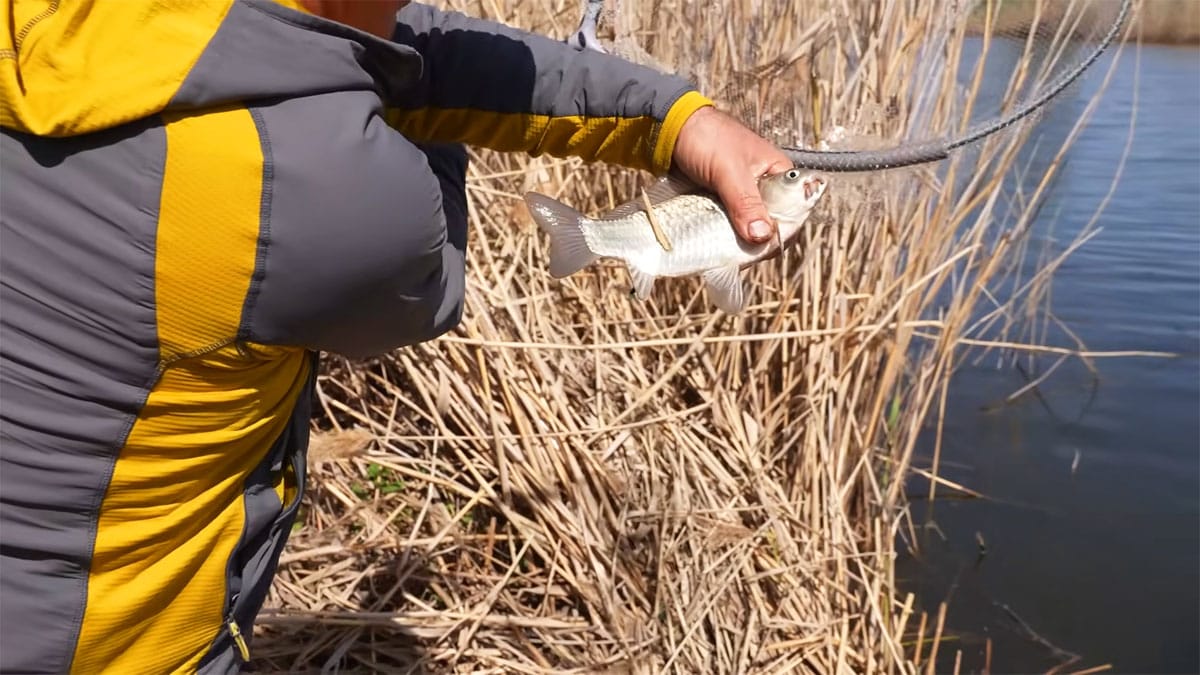 Самая эффективная тактика в этот период — активный поиск без предварительного закармливания. Начинать ловлю стоит с двух удилищ, забрасывая их на разные дистанции. Одну оснастку лучше положить максимально близко к срезу прошлогоднего камыша на глубину 1-1.5 метра, а вторую — на нижнюю бровку или выход из ямы, где глубина достигает 2.5-3 метров.