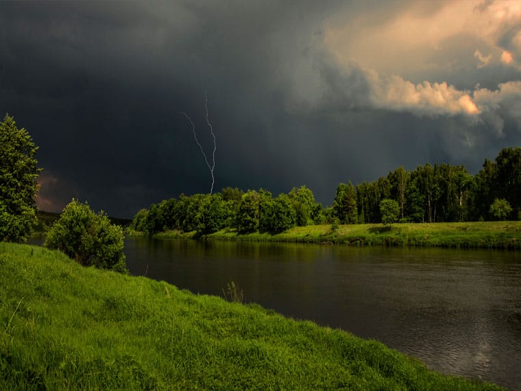 Это «золотое» время для спиннингистов. Приближение грозового фронта и падение атмосферного давления станут сигналом для хищника к атаке.