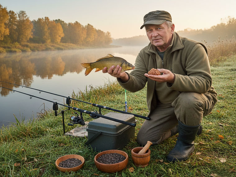 Карась капризничает в холодной воде? Эксперт делится рецептом уловистого теста из жареных семечек, которое гарантирует активный клев осенью.