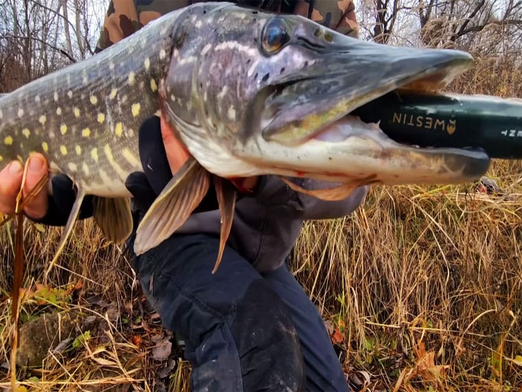 Головна помилка багатьох спінінгістів пізньої осені – використання помітних металевих повідців. Богдан Проценко зазначає, що в холодній воді хижачка втрачає агресію вересня і довго розглядає здобич перед атакою.